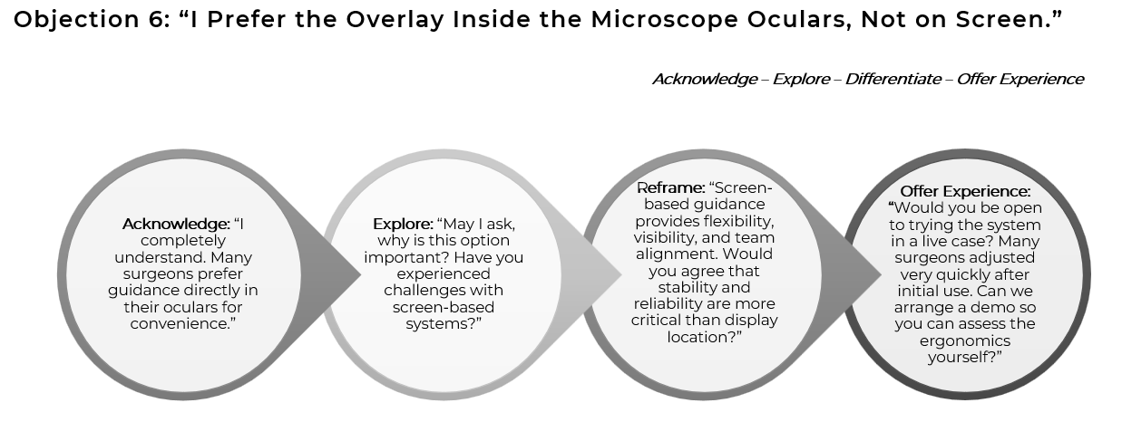 Navigate common objections using a structured approach–acknowledge the customers perspective, explore with open-ended questions, differentiate based on their feedback, and close with confidence.